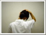 1.首の横を伸ばしましょう (10秒×3セット) 〈首を横に倒し頭を倒した方の手で軽く頭を押さえます〉